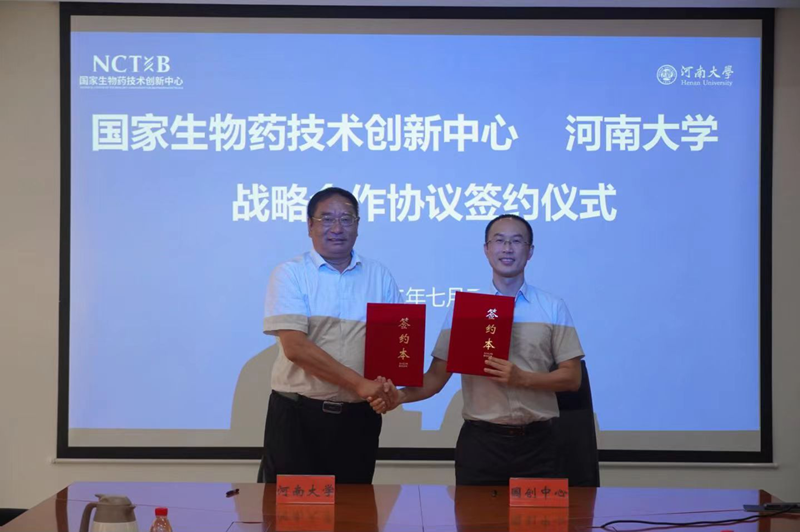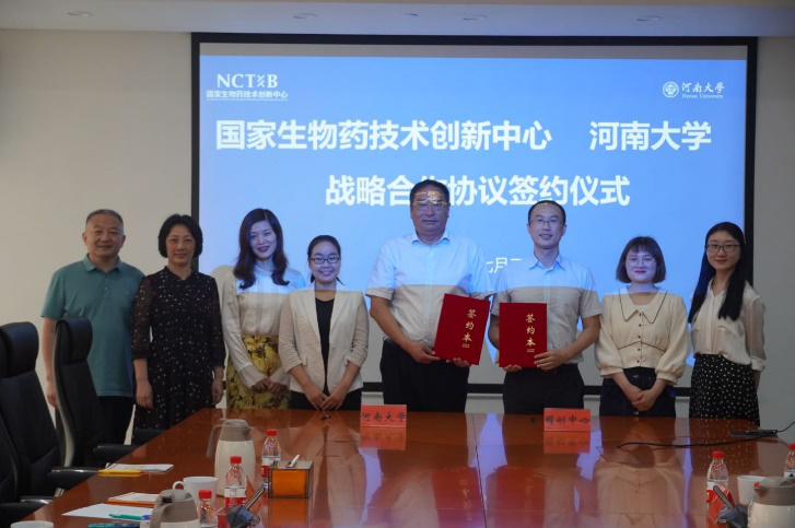 7月30日,河南大学与国家生物药技术创新中心战略合作协议签约仪式在苏州工业园区生物产业发展有限公司举行。校党委常委、副校长孙君健,基础医学院副院长、抗体药物开发技术国家地方联合工程实验室主任李霞,药学院执行院长韩光,国家生物药技术创新中心副主任王勰及相关人员参加了签约仪式。孙君健和王勰代表双方进行签约。
