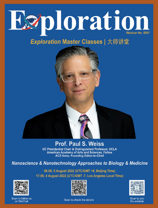 8月5日,首期Exploration—大师讲堂正式启动,特邀著名纳米生物学家,ACS Nano创刊主编,加州大学洛杉矶分校讲席教授Paul S. Weiss教授为首期报告嘉宾。本次大师讲堂为线上举行,由河南大学副校长王学路教授代表学校致辞,Exploration主编梁兴杰教授代表期刊致辞,Exploration执行主编冰洋教授主持开幕仪式和报告。