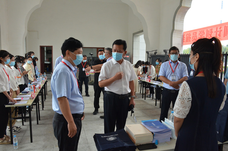 8月25日,在飒飒的秋雨中,河南大学郑州龙子湖校区迎来了前来报到的河南省“万名中小学校长培训计划”700名报到学员。校党委常委、副校长、教育学部党委书记孙功奇在相关人员陪同下,深入报到现场看望学员和项目办公室工作人员。