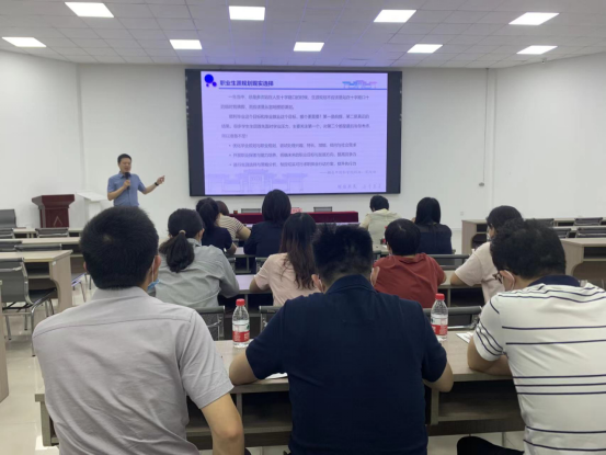 就业创业指导中心主任李从国以“同心协力扎实推进“金课”建设——关于强化课程建设与教学改革的一些思考”为主题,从提升教学效果、重建课程体系、钻研教学创新三个方面讲述了我校《职业生涯规划》课程的建设历程、教学改革探索、初步成果以及新的课程体系、教学设计。他表示,生涯发展教育作为高校教育的重要抓手,要适应新时代新要求,加强生涯课程内涵式发展,要强化就业育人实效,助力大学生更加充分更高质量就业。