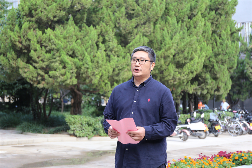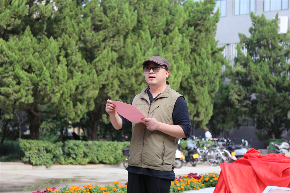 陶宗晓代表美术学院2004届校友发言,他动情地回忆起在母校生活的点点滴滴,表达了对母校的感恩之心。他表示,在母校110周年华诞之际,美术学院2004届校友十分荣幸能够以张载雕像献礼母校,也真诚祝福所有河大学子,在“横渠先生”雕像下潜心学习,奋力向前,再创佳绩。