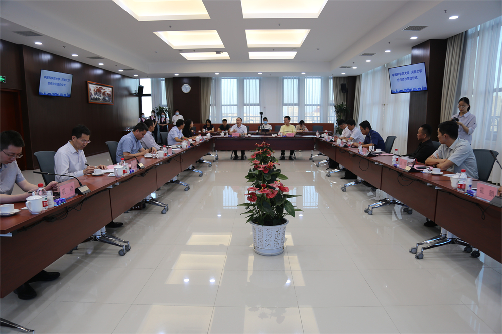 中国科学院大学党政办公室、艺术中心、国内合作处和河南大学校长办公室、研究生院、科学技术研究院等职能部门负责人参加签约仪式并进行深入讨论交流。