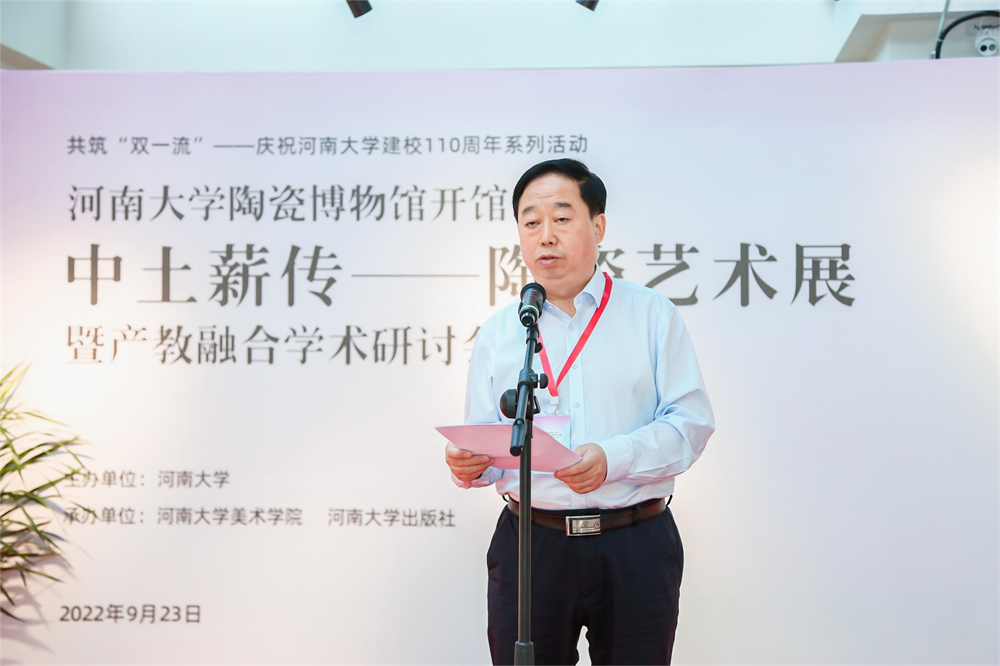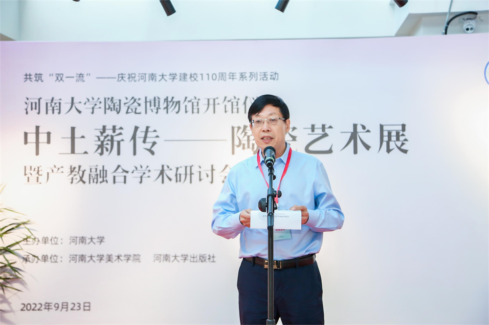 百十风华,赓续新章。作为庆祝河南大学建校110周年的重要活动之一,9月23日上午,共筑“双一流”——庆祝河南大学建校110周年“中土薪传”陶瓷艺术展暨产教融合学术研讨会在河南大学郑州龙子湖校区陶瓷博物馆举行。