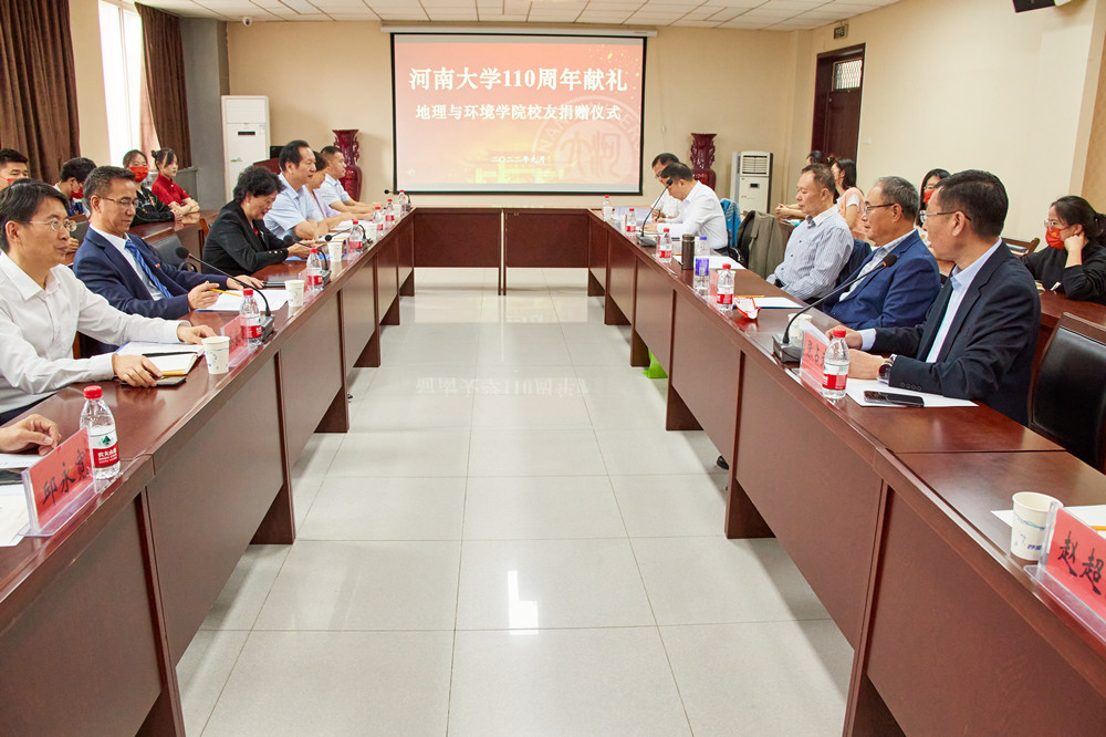 傅声雷代表学校向地理与环境学院各级校友对母校捐赠表示衷心的感谢,并介绍了学校、学院的发展近况。他指出,校友是母校流动的金色名片,校友们分散于各行各业,不断创造出类拔萃的成绩,是母校的荣耀与骄傲,河大的精神和情怀在校友中薪火相传,堪称佳话。一百多年来,一代代河大师生久久为功、只争朝夕,为百年名校振兴的梦想不懈努力,学校每一步前进都离不开广大校友的关心与支持,此次捐赠既是校友们对河南大学建校110周年的珍贵献礼,也是对学院不断发展建设的有力帮助。他强调,今年是学校第二轮“双一流”建设的开启之年,也是落实省委省政府打造河南高等教育“双航母”战略的关键之年,学校将珍惜并妥善利用每一笔捐赠,进一步提高师资力量、学科建设和人才培养等方面的水平,以更加昂扬的姿态为建设世界一流大学、实现百年名校振兴努力奋斗。同时,他欢迎校友们继续关注母校,有时间常回家看看,齐心协力,共谋发展。