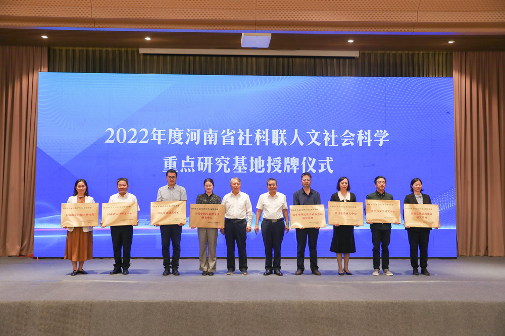近日,由河南省社科联主办的“第十一届河南社会科学学术年会”在郑州召开。本次学术年会公布了2022年度“河南省人文社会科学重点研究基地”名单并举行授牌仪式,哲学与公共管理学院“洛学与宋学研究中心”成功获批。研究中心主任、哲学与公共管理学院教授叶平参加授牌。