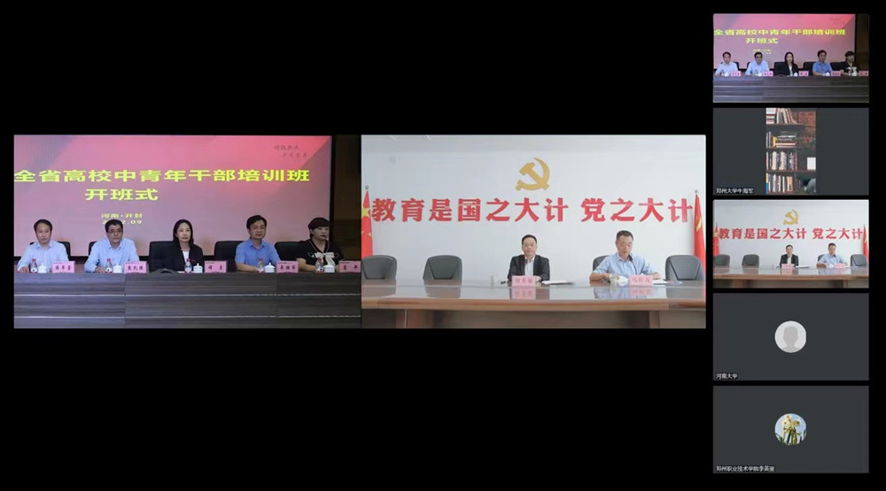9月28日上午,由河南大学承办的第47期河南省高校中青年干部培训班开班式在线举行。河南省委教育工委专职委员何秀敏,省委教育工委、省教育厅组织干部处处长冯轩友,河南大学党委常委、副校长谭贞,党校常务副校长、党委组织部副部长、干部培训中心党总支书记韦胜军,干部培训中心主任袁凯强等同志分别在郑州和开封会场出席开班式。开班式由冯轩友主持,全省高校131名学员参加。