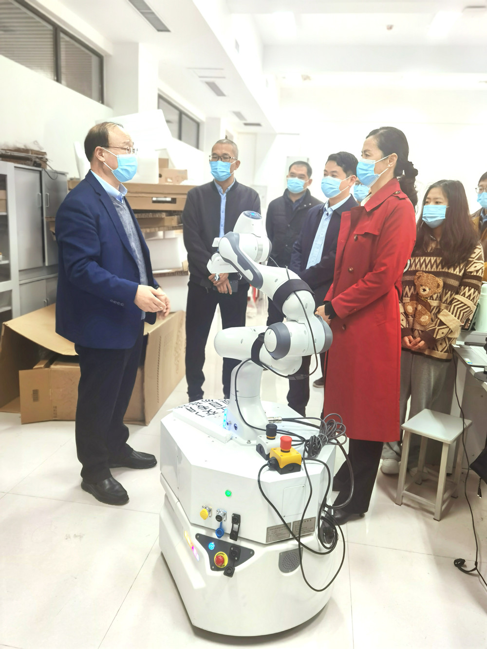 座谈会前,张锁江一行参观了人工智能学院的车联网国际联合实验室、研究生工作室等,并与实验室师生亲切交谈,详细了解实验室的软硬件设施、学习环境和运行情况,对学院提升教学科研基础保障、营造浓郁的科研文化氛围等提出要求。