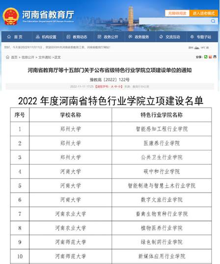 近日,河南省教育厅等十五部门公布了《关于省级特色行业学院立项建设单位的通知》(豫教高〔2022〕122号),我校碳中和行业学院正式获批立项为省级特色行业学院。