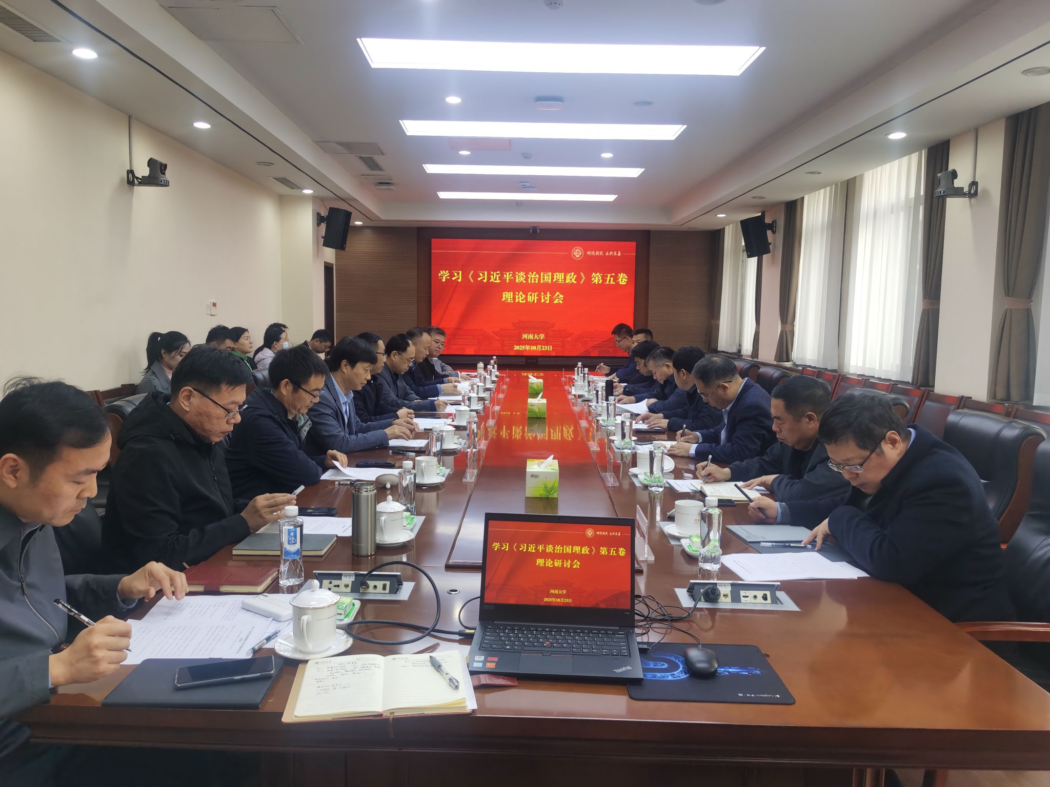 为深入学习宣传贯彻习近平新时代中国特色社会主义思想,推动理论学习与学校发展深度融合,10 月 23 日下午,我校在金明校区行政楼 208 会议室召开《习近平谈治国理政》第五卷学习研讨会。会议由校党委宣传部、党委组织部联合主办,校党委副书记李平出席并作总结讲话,校党委宣传部部长姬志闯主持会议。