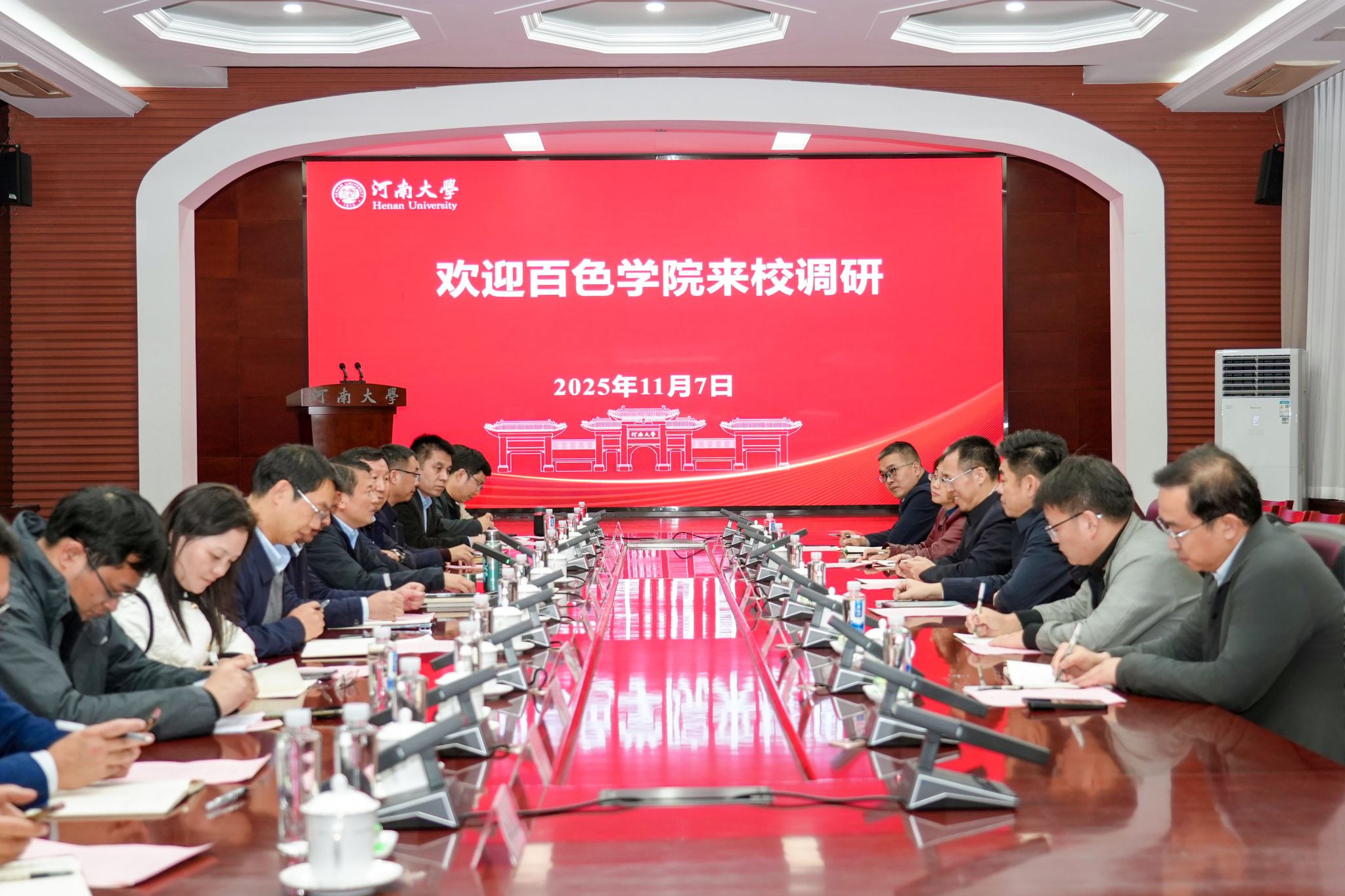 11月7日,百色学院党委书记刘玄启一行到访河南大学,校党委书记季波在明伦校区小礼堂会见来宾并座谈交流。河南大学副校长苗雨晨,百色学院党委常委、副校长孙鲁毅、刘芳,以及双方有关部门负责人参加座谈。座谈由苗雨晨主持。