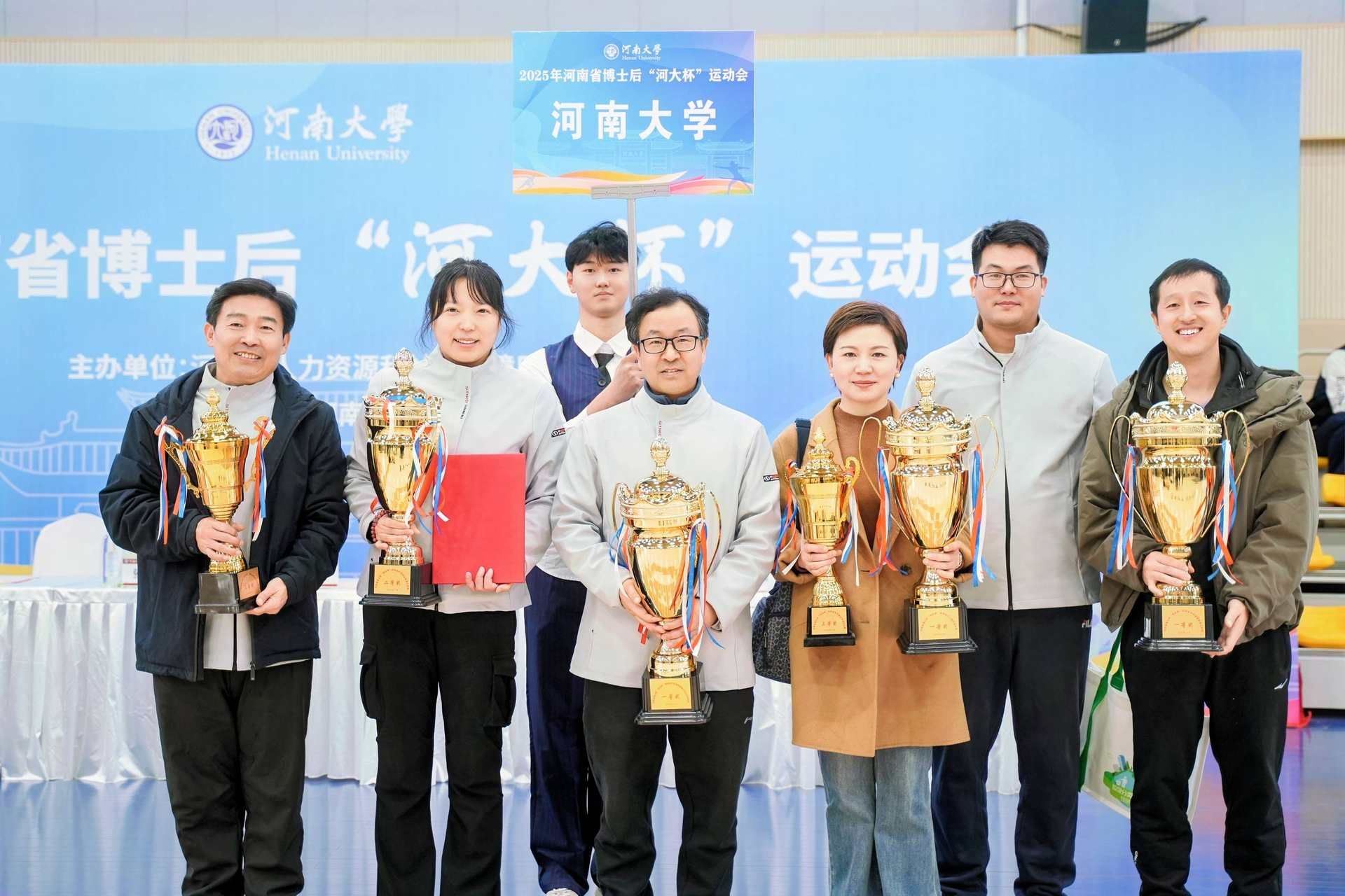 赛事期间,运动员们团结协作、奋勇争先,赛场之上,热血与温情交织,拼搏与坚守共振,展现出博士后群体踔厉奋发、追求卓越的良好风貌。篮球比赛中,河南大学代表队攻防衔接默契,快速反击传球精准、防守协同补位,掌声与呐喊声不断。抗体药物开发技术国家地方联合工程实验室博士后王佳佳、音乐学院博士后王思琦充分展现了羽毛球运动的速度与激情,扣杀、吊球、网前截击等精彩瞬间层出不穷。乒乓球场馆内,河南大学建筑工程学院教授杜文风、哲学与公共管理学院博士后陈准、体育学院博士后许亚丽削球防守稳扎稳打,弧圈进攻凌厉迅猛,展现出过硬的竞技水平和坚韧的体育精神。经过两天的角逐,河南大学代表队一举斩获三人制篮球、乒乓球男单、乒乓球管理人员及合作导师组三个一等奖,乒乓球女单二等奖,旱地龙舟、羽毛球男双三等奖,并获优秀组织奖。“本次博士后运动会给我们提供了很好的交流机会,碰撞学术思想的同时,又能强身健体,作为承办方,大家都体验到了河南大学深厚的历史文化底蕴,同时也为我们公正裁判,公平比赛的精神点赞。”三人制篮球赛队员体育学院博士后沙临博在得知河南大学代表队获奖后兴奋地说道。