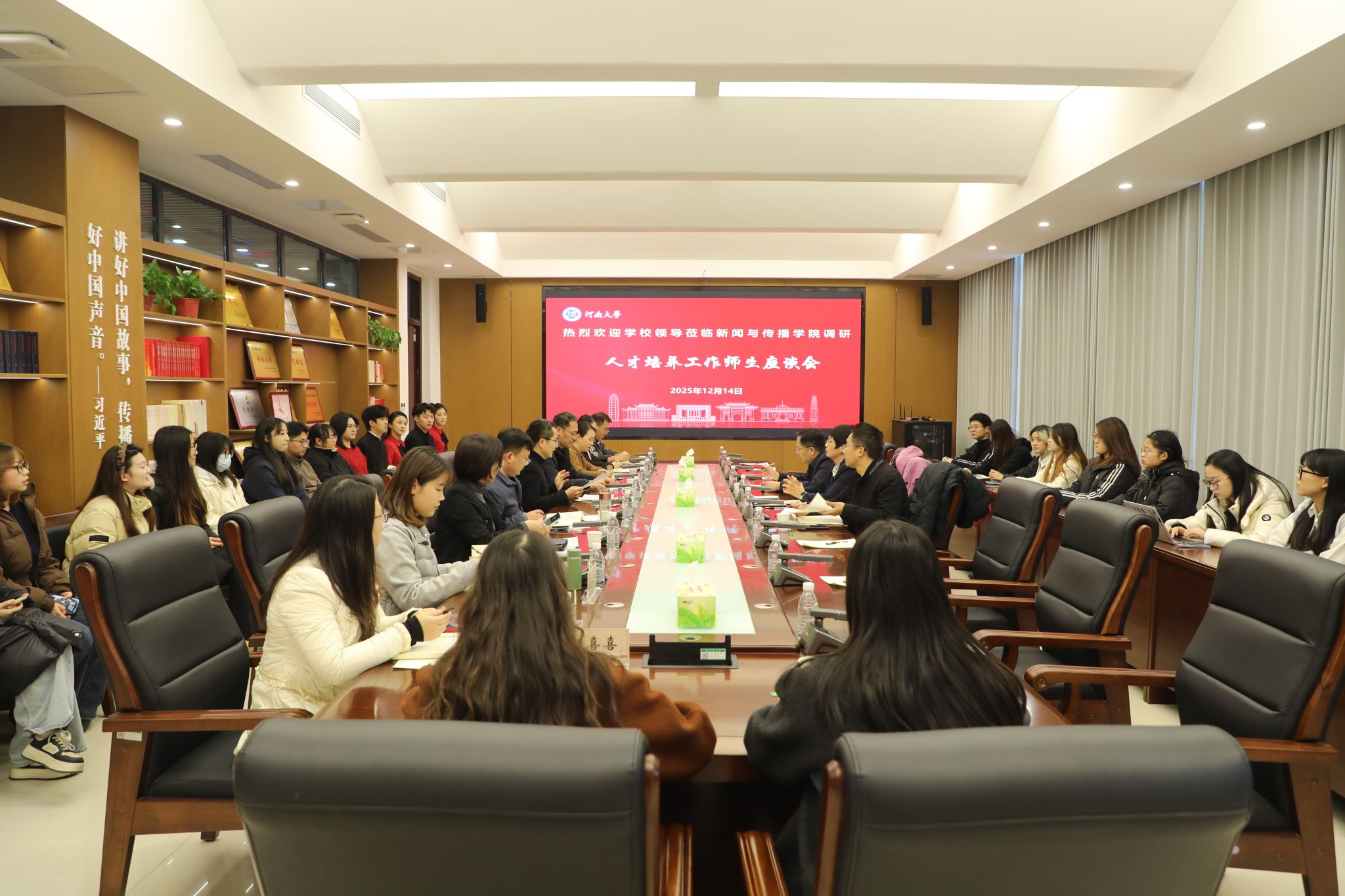 12月14日下午,副校长白莹带领本科生院常务副书记、教务处处长何欣,党委学生工作部部长、学生处处长樊小勇,到新闻与传播学院/出版学院开展人才培养工作专题调研,并于友兰学堂北楼C303室召开师生座谈会。学院党委书记乔石豪主持会议,学院相关领导班子成员及师生党员代表参加座谈。