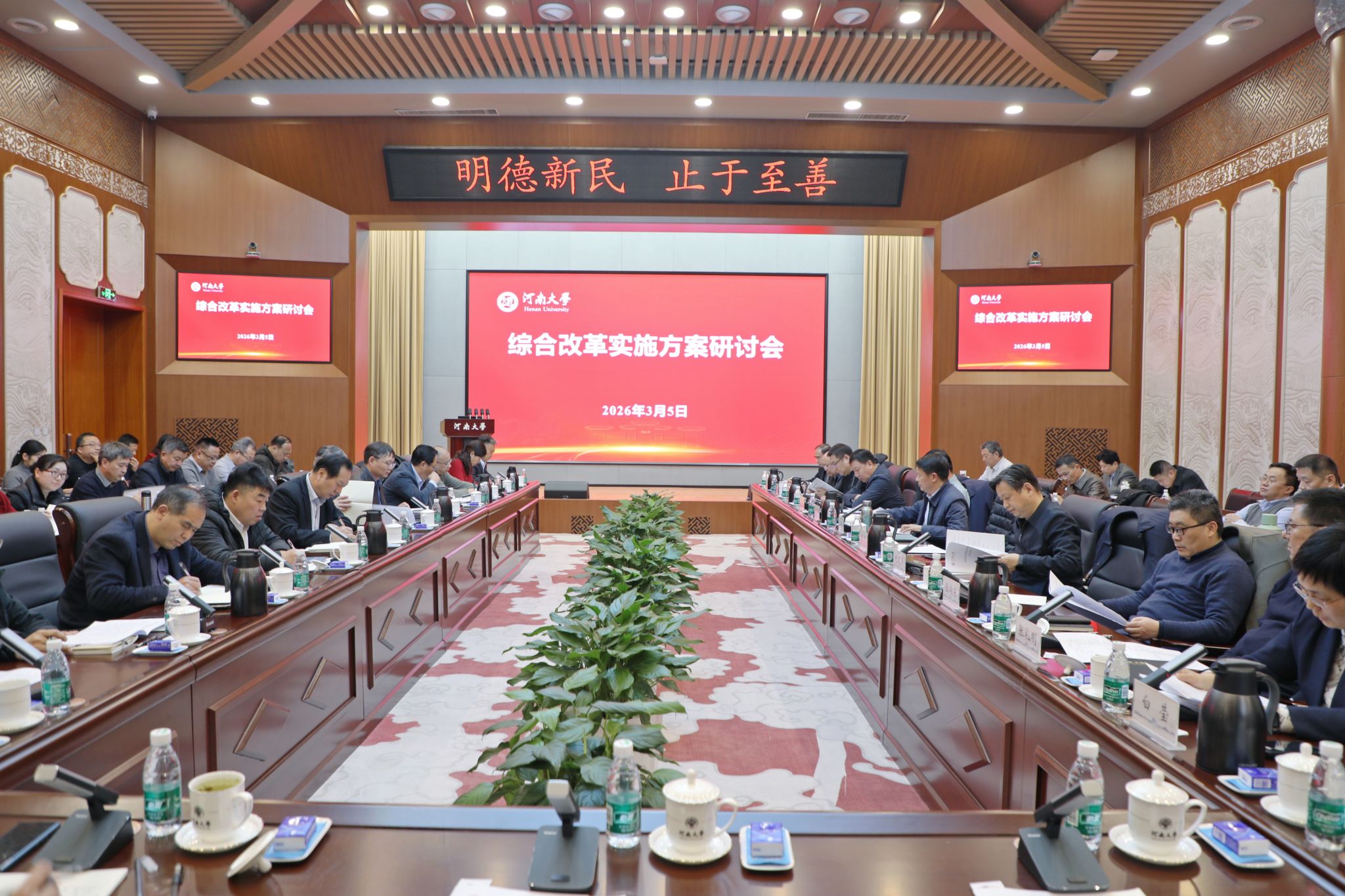 就保障改革方案高效落地实施,张锁江提出五点要求:一要坚持“全校一盘棋”。强化党政统一领导、协同推进,成立综合改革工作领导小组,统筹协调、一体推进各项改革任务落地见效。二要实行目标责任制。改革任务要区分重点堵点攻坚、创新增量突破、常规基础保障,关键是聚焦重点、抓住关键,按轻重缓急,分类推进、精准发力、务求实效。三要构建高效智能协调机制。充分运用大数据、人工智能等现代信息技术赋能改革管理,实现任务督办电子化、智能化,优化资源配置、政策供给与服务保障,为综合改革提供更加高效联动的体制机制保障。四要加强校园文化建设。大力弘扬“ 自信、拼搏、开放、创新” 的新河大精神,着力营造奋发向上、担当实干、凝心聚力、奋勇争先的良好氛围,凝聚起推进综合改革的强大合力。五要坚守安全底线。统筹发展与安全,牢固树立底线思维,强化风险防范意识,确保改革发展平稳有序,切实维护校园安全稳定大局。