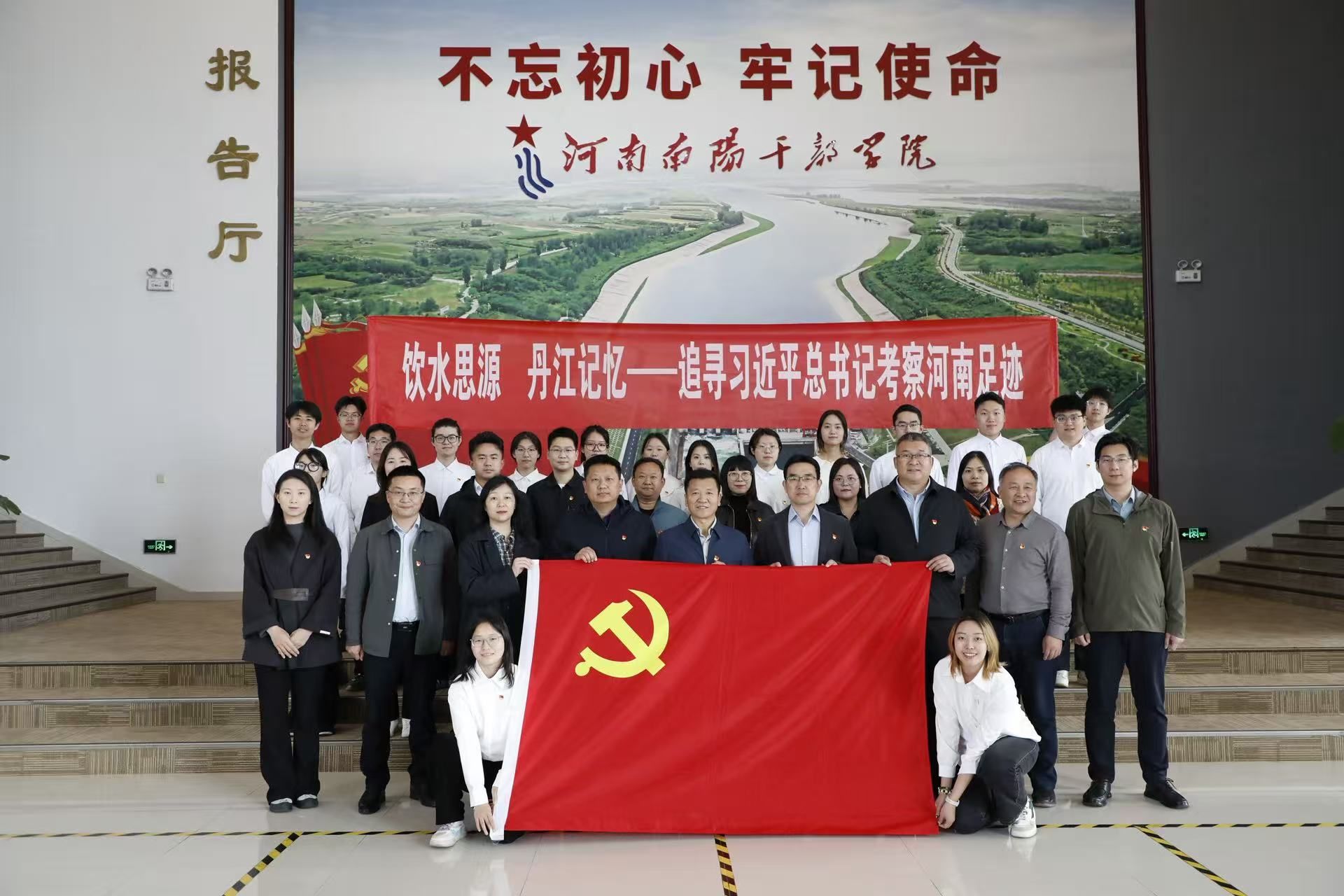 2026年3月31日至4月1日,在习近平总书记出席研讨会17周年之际,为深入学习贯彻习近平新时代中国特色社会主义思想和习近平总书记重要指示精神,传承践行南水北调精神,在追寻领袖足迹中凝聚奋进力量、勇担时代使命,学校党委办公室党支部、机关党委党支部与文学院党委共同开展“饮水思源 丹江记忆——追寻习近平总书记考察河南足迹”联合主题党日活动,战略与改革发展研究室、文学院马克思主义研究会党支部等师生党员一同参与。