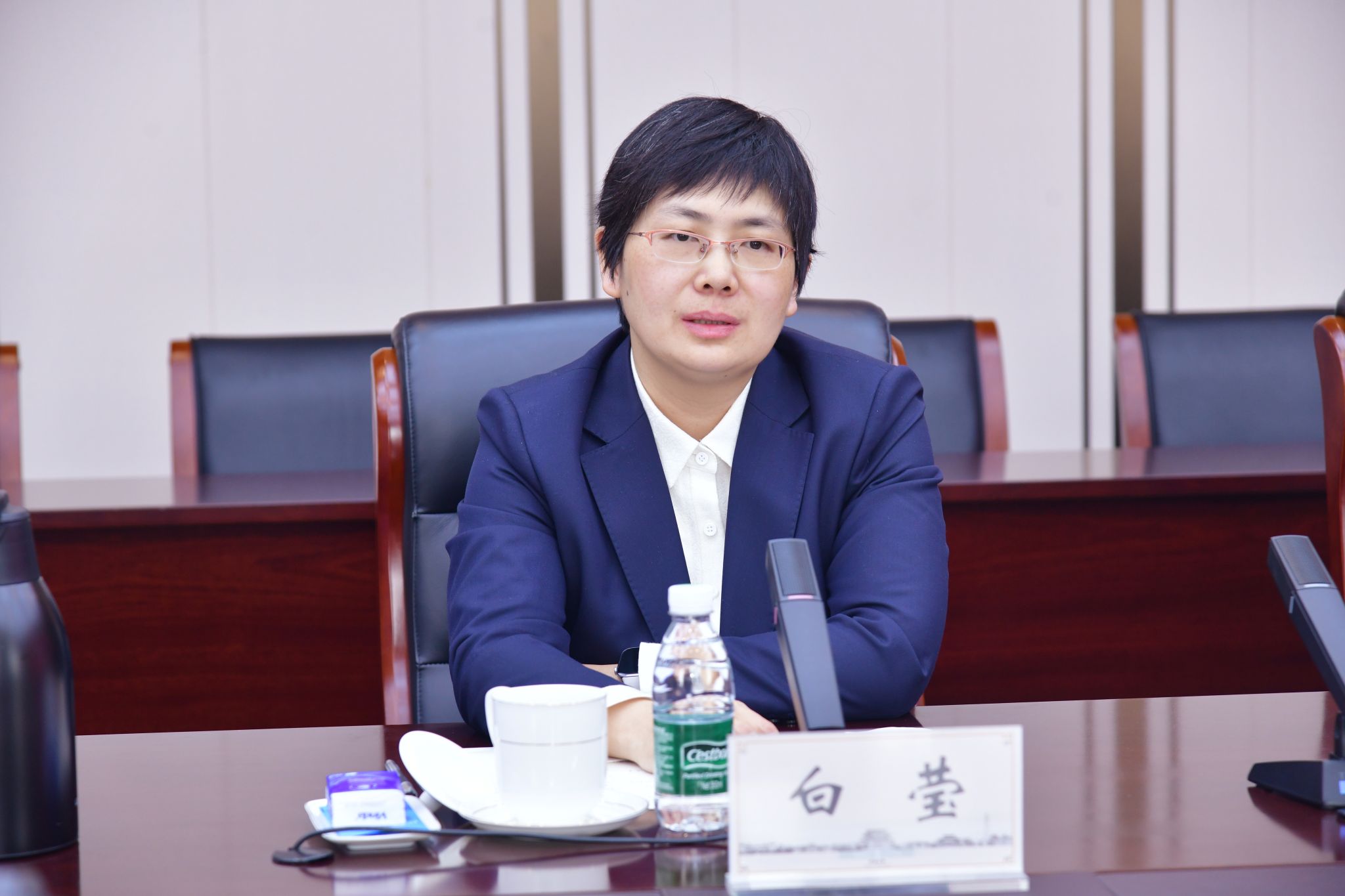 白莹对范小振一行的到来表示热烈欢迎,并简要介绍了我校的历史沿革、办学格局和发展近况。她指出,河南大学自建校之初便根植开放办学的文化基因,近年来锚定“研究型综合性国际化一流大学”办学新定位,深入实施“强理振文、新工新医”办学主线,国际化办学水平持续提升。她表示,沧州师范学院办学特色鲜明、育人成果丰硕,希望两校以此次交流为契机,在国际化人才培养、中外合作办学建设等方面互学互鉴、协同并进。