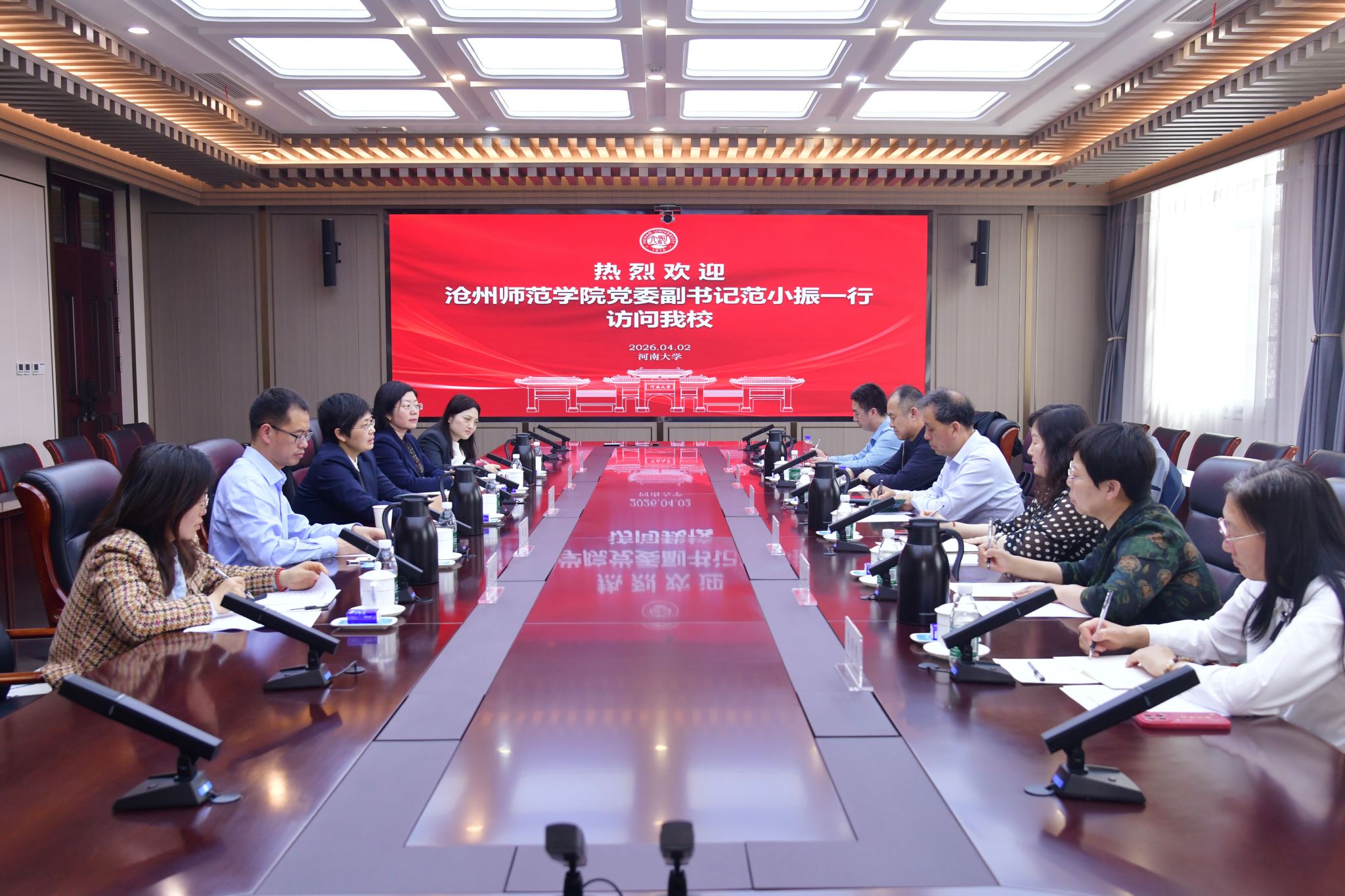 范小振对我校的热情接待表示感谢,并介绍了沧州师范学院的办学特色及发展现状。他表示,学校坚持“地方性应用型师范类”办学定位,今年首次获批中外合作办学项目,此次来访旨在学习河南大学在国际化办学领域的先进理念与实践经验,希望双方加强务实合作,共同提升办学质量与影响力。