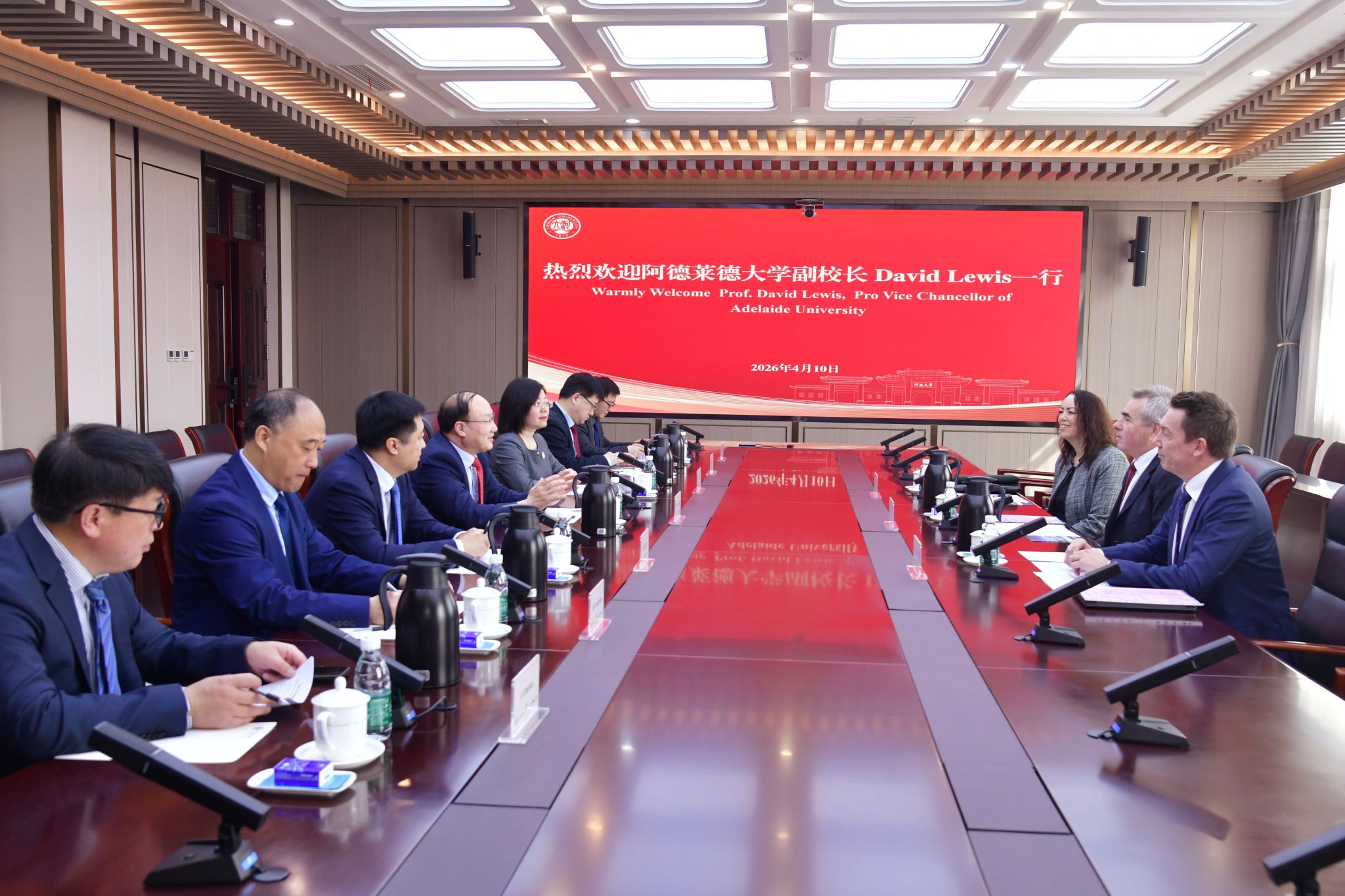 他指出,学校始终秉持开放办学理念,积极深化与世界一流大学的战略合作。阿德莱德大学作为澳大利亚顶尖研究型大学之一,与我校在化学工程、材料科学等优势学科领域有着坚实的合作基础和广阔的合作前景。他提到,2025年11月其带队到阿德莱德大学访问,双方就合作办学、科技合作、人才交流等已达成多项共识。此次David Lewis一行专程回访,就是要进一步细化具体事项,推动去年双方合作框架方案落地。他希望,以此次访问为契机,在稳步推进现有合作基础上,持续拓展合作内容,积极开展联合科研攻关、共办高水平学术研讨会、加强师生互访互学,促进中澳文化交流互鉴,携手为两校高质量发展注入新动能。