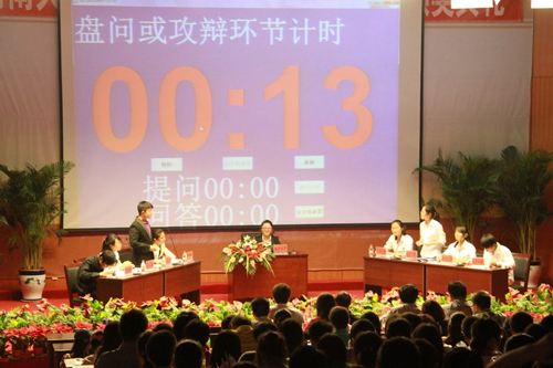 经过初赛、复赛、半决赛的角逐,经济学院、哲学与公共管理学院、法学院与艺术学院晋级总决赛。决赛取“高校全部实行自主招生利弊孰重”为辩题,共分为立论、攻辩、攻辩小结、自由辩论及总结陈词五个环节。在冠军争夺赛中,正方哲管院立足“高校全部实行自主招生利大于弊”的观点,从自主招生制度、高校、社会等方面进行逻辑严谨、思维缜密的精彩论述。反方经济学院不甘示弱,从立论到总结陈词,论述妙语连珠,博引的事例环环相扣,紧咬所立观点,并依据高校全部实行自主招生制度不适合我国国情的事实,驳对方之论,进行了有力的反击。双方唇枪舌战,针锋相对,展现了我校学子睿智、幽默的风采,为观众带来了视觉、听觉、思维上的盛宴。最终,经济学院代表队摘得冠军,哲管院代表队赢得亚军。季军在法学院代表队与艺术学院代表队思维的激烈碰撞、语言的犀利交锋中诞生,法学院略胜一筹,胜出比赛。