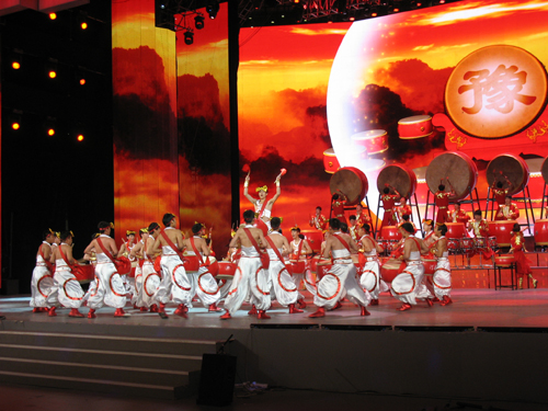 我校2012年4月收到来自央视有关《五月的鲜花——心中的歌儿唱给党》活动的邀请函,在学校党政领导的大力支持下,在校团委统筹安排和相关学院的积极配合下,来自体育学院、经济学院的四十名在校大学生组成盘鼓队进行训练。尽管时间紧、任务重,队员们不叫苦、不喊累,充分展现出青年学子的拼搏奋斗精神。在开封“鼓王”刘震老师的悉心指导下,作品一次次打磨,一次次修改,最终成型。