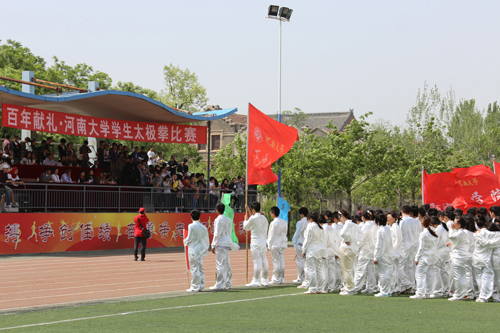 2012年4月26日下午,阳光明媚的河大校园迎来了第十届学生太极拳比赛。本次比赛在我校明伦校区和金明校区同时举行,校党委副书记王凌、校长助理张保国分别到两个校区观赛并致辞。校党委宣传部、学生工作处、校团委、教务处、公共体育教研部以及各学院相关负责人到场观看了比赛。