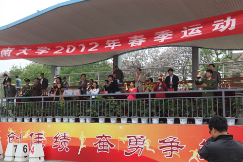 激烈角逐展现学子青春风采,体育盛事共享河大百年辉煌。4月20日下午,为期三天的河南大学2012年春季运动会在明伦校区东操场圆满落下帷幕。校党委副书记王凌、副校长关学增及党政办公室、教务处、学生处、公共体育教研部等相关部门负责人出席闭幕式。闭幕式由校党政办公室主任、校体委副主任许绍康主持。