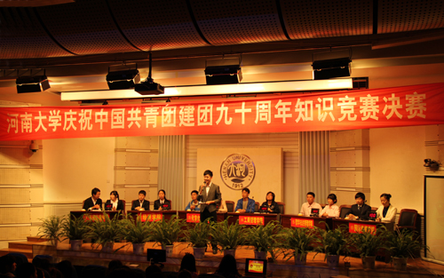 2012年4月17日,河南大学庆祝中国共青团建团九十周年知识竞赛总决赛在明伦校区科技馆二楼报告厅举行。校团委相关负责人以及部分院系团委书记与会。