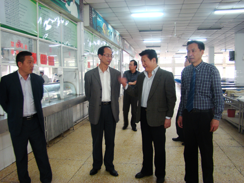 在副校长关学增,校党委宣传部、后勤服务总公司有关负责人的陪同下,朱宝铜实地考察了我校金明校区北苑食堂。