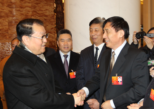 2012年3月3日上午,中共中央政治局常委李长春同志带着对河南人民的深厚情谊,来到北京河南大厦,亲切看望出席十一届全国人大五次会议的河南团的各位代表。