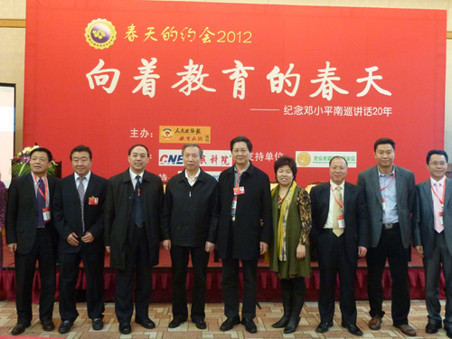 为纪念邓小平南巡讲话20年,共同寻找中国教育下一步改革的方向和应该坚守的精神,3月2日下午,在全国两会开幕前夕,由教育部和《人民政协报》联合举办的“向着教育的春天2012—纪念邓小平南方讲话20年”座谈会在北京翠宫饭店隆重举行,全国政协教科文卫体委员会副主任、教育部原副部长赵沁平,教育部法规司司长孙霄兵、发展规划司副司长宋德民,国家教育发展研究中心副主任杨银付,人民政协报副总编辑张宝川以及来自政府、政协、党派、教育等各界的近百位两会代表和教育一线的负责人参加了会议。