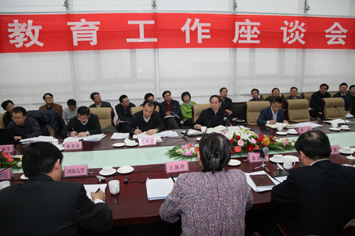 省教育厅厅长王艳玲就我省教育工作情况作了汇报。她首先介绍了我省省情和教育发展概况。在汇报高等教育情况时,她说,河南大学启动实施百年名校河南大学振兴计划,棉花生物学重点实验室被评为国家重点实验室、实现了我省高校国家重点实验室零的突破。同时,省部共建以来,河南大学整体办学水平明显上升,在学科建设等方面实现了一系列突破。她就2012年我省教育改革发展思路、贯彻落实国家教育规划纲要、财政教育支出增长、高校化债、生均拨款提高等作了汇报。最后,她提出,希望教育部在对河南加快构建基本公共教育服务体系、职业教育方面给予支持,特别在高等教育方面,她希望建设好河大、郑大两所高校,提升河南骨干高校办学水平,共建一批国家重点学科和实验室,支持更多高校纳入“中西部高等教育振兴计划”,支持河南省高校建立协同创新战略联盟,扩大研究生、本科生特别是博士生招生计划。