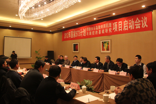 2012年1月7日,以我校宋纯鹏教授为首席科学家的国家973计划项目“作物水分高效利用机理与调控的基础研究”启动会在开元名都大酒店召开。本“973”项目咨询专家组成员中国科学院上海分院院长汤章城研究员、中国科学院沈阳应用生态研究所闻大中研究员、中国农业大学李保国教授,项目专家组成员中国农业大学植物生理与生化国家重点实验室主任武维华院士、上海植物生理生态研究所所长薛红卫研究员、我校黄河学者王学臣教授等出席启动会议。