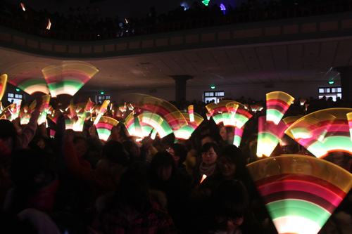 时针即将指向零点时,现场师生共同开始倒计时:10—9……3—2—1,大家齐喊“新年好”。在热烈的欢呼声中,2011满载着振奋人心的丰收喜悦与悲欢交织的动人回忆走进历史,2012带着无限的希望和全新的机遇来到河大园。