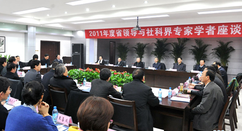 12月20日,省领导与社科界专家学者座谈会在郑州召开,省委书记、省人大常委会主任卢展工出席会议,省委副书记邓凯、常务副省长李克、省委副秘书长刘春良、省人大副主任王菊梅、省政协副主席高体健、省直有关部门负责人和耿明斋、苗长虹、魏成龙及中原发展研究院宋伟博士等10余名河南省社科界著名专家学者参加座谈会。