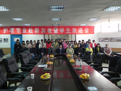2011年12月9日上午,河南大学护理学专业学生赴新加坡留学欢送会在护理学院二楼会议室举行。校党委常务副书记梁晓夏与学生处、国际交流处、护理学院、民生学院、欧亚国际学院等单位的负责人出席欢送会。欢送会由护理学院党委书记王颖主持。