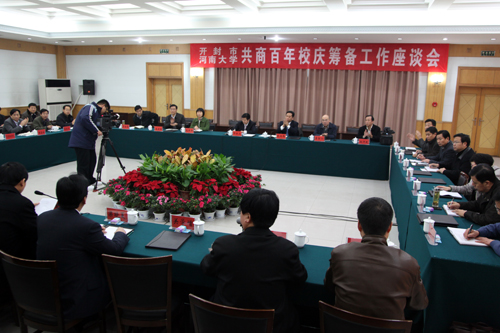 2011年11月29日上午,我校与开封市就百年校庆筹备工作在明伦校区新行政楼第四会议室召开专门座谈会。校领导关爱和、娄源功、梁晓夏、王凌、关学增、邢勇,开封市有关领导祁金立、吉炳伟、朱丽萍、李留心、秦保强等,以及学校相关职能部门,开封市相关区、局负责同志与会。座谈会由校党委书记关爱和主持。
