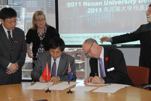 维多利亚大学与我校已经进行了多年成功的合作办学,关爱和等的访问受到该校高度重视。见面会议由该校董事会主席George Pappas主持,校长Peter Dawkins介绍了维多利亚大学的基本情况和今后发展的目标。外事副校长Andrew Holloway介绍了维多利亚大学的国际合作状况,尤其介绍了和我校的合作。关爱和高度评价了两校多年来的合作,双方本着互惠互利的原则,在合作办学方面探索出了一条新途径。关爱和表示,在进一步引进澳方优质教育资源、深入开展合作办学的同时,力争引进澳方优势科学研究资源进行科研合作。维大校长表示同意并希望两校今后能在更多领域开展合作和交流。随后,关爱和与维大校长Peter Dawkins一起共同签署了新的十年合作协议。关爱和还邀请维大董事会主席George Pappas和校长Peter Dawkins 明年参加我校百年校庆活动。下午,关爱和等还应邀听取了维多利亚大学科研副校长 Linda Rosenman和有关科研机构负责人对学校和各自单位科研情况的介绍,并希望在可能的领域进行合作。关爱和一行还参观了维大的图书馆和科学研究设施。