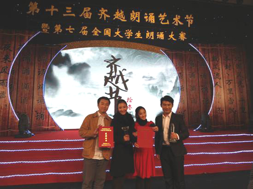 11月20日晚,第十三届齐越朗诵艺术节暨第七届全国大学生朗诵大赛在中国传媒大学圆满落幕,我校原创朗诵作品《光影人生》获得本次朗诵大赛二等奖。同时,我校荣获优秀组织奖。