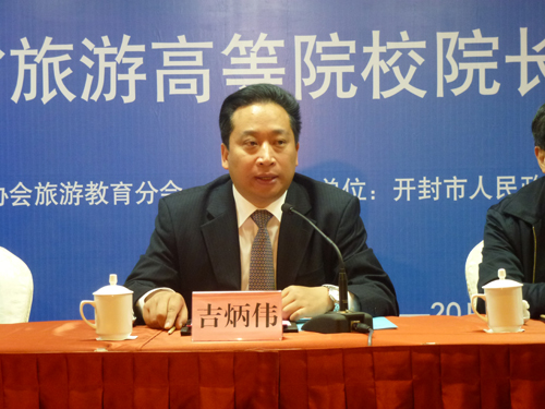 郑泰森、冯德显、孙根年作为主讲嘉宾在大会上发言。与会代表围绕《国务院关于支持河南省加快建设中原经济区的指导意见》提出的“挖掘整合旅游资源,推动文化旅游融合发展,把河南省建成世界知名、全国一流的旅游目的地”的战略目标进行了认真探讨,深入剖析了新形势下河南旅游发展,总结了我省高等旅游教育取得的成就,展望了未来高等旅游教育的发展趋势,对“开封国际旅游文化名城发展战略”这一议题展开了热烈的交流。