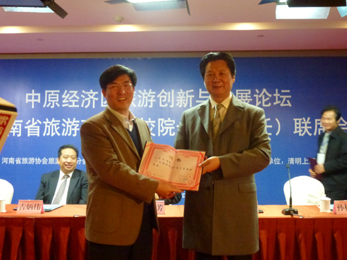 2011年11月19日上午,由河南省旅游协会旅游教育分会主办,开封市人民政府、河南大学联合承办的中原经济区旅游创新与发展论坛暨河南省旅游高等院校院长(系主任)联席会在开封中州国际饭店举行。