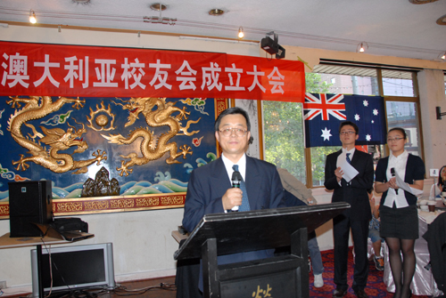 校友会成立大会上各方与会嘉宾分别致辞并宣读澳大利亚总理贺信、州长贺信、澳大利亚反对党领袖贺信;杨中波宣读了中国驻澳大利亚大使馆贺信。
