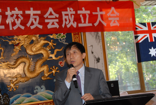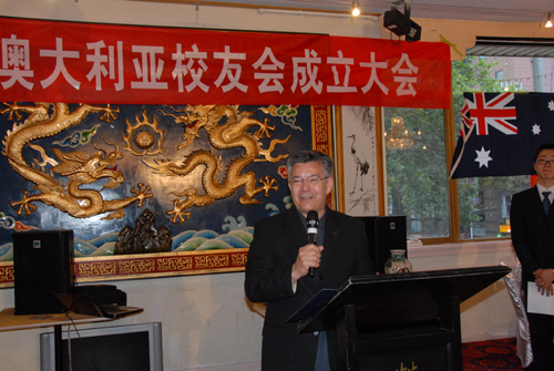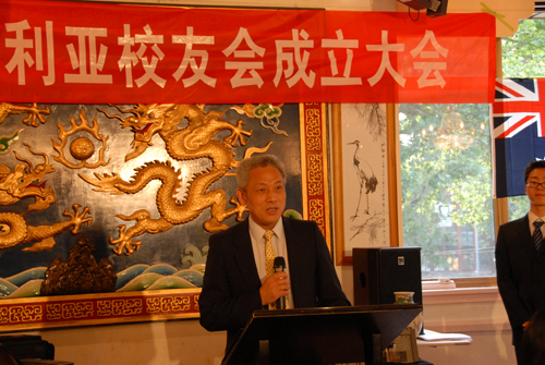 刘钢军代表澳大利亚校友会作了主题发言。他说,河南大学澳大利亚校友会的成立,是我们校友生活中的一件大喜事。她使我们有了重温师恩,共叙友情的平台,有了回眸故土、交流信息、了解母校、回报母校的渠道和机会。校友会将遵循“增进在澳校友间的联系;促进校友和其他社团、学术界和企业界的交流;加强母校同校友之间的联系,增进友谊,开展教育、科研、学术文化交流活动”为宗旨,努力服务校友,使澳大利亚的河大校友会真正成为全体校友的精神家园。同时,在百年校庆之际,衷心祝愿母校再谱新的华章!再铸新的辉煌!