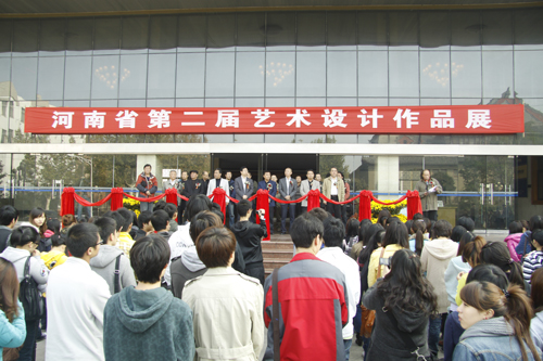 10月29日上午,由河南省美术家协会主办,河南省美协艺术设计艺委会,河南省教育界书画协会,河南大学艺术学院承办,郑州市创意装饰设计有限公司协办的“河南省第二届艺术设计作品展”开幕式在艺术学院举行,河南省教育厅副厅级巡视员刁玉华、河南大学副校长刘志军、河南省美术学协会副主席兼秘书长刘杰、河南省包装技术协会秘书长李武军、河南省美术家协会副主席马岭、河南省美术家协会设计艺委会副主任胥昌群,艺术学院相关领导及兄弟院校领导出席开幕式并剪彩,开幕式由艺术学院副院长李建设主持。