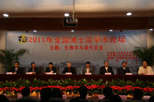10月29日上午,由全国博士后管委会办公室、中国博士后科学基金会与河南省人力资源和社会保障厅主办、我校承办的“2011生物学与现代农业博士后学术论坛”在金明校区行政楼报告厅拉开帷幕。