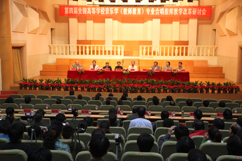 10月18日上午,第四届全国高等院校音乐专业(教师教育)合唱与指挥教学改革研讨会在我校艺术学院音乐厅隆重开幕。我校常务副校长赵国祥,河南省教育厅体育与卫生艺术教育处处长郭蔚蔚,合唱学术委员会顾问、著名合唱指挥大师严良堃,我国著名指挥家杨鸿年,著名音乐理论家、音乐教育家王安国等领导专家,及合唱学术委员会主任委员出席了开幕式。