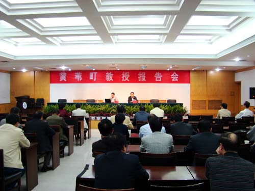 2011年9月22日下午,校党委中心组学习在明伦校区新行政楼第四会议室举行,这次学习特邀请中共中央《求是》杂志研究员黄苇町作了《汲取苏联亡党教训,积极推进党内民主》的专题报告。参加学习的有校党委委员、纪委委员、各机关部处及各基层党组织主要负责人。报告会由校党委书记关爱和主持。