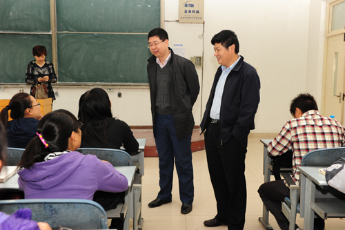 9月19日是新生上课的第一天,副校长刘志军一早就来到金明校区综合教学楼,实地查看新生上课情况。刘志军认真询问了教室、课表的安排情况,对教师和学生出勤、多媒体设备及语音教室的使用情况等进行了认真检查。对于检查中发现的个别教学楼内房间使用不规范等问题,当即责成有关部门尽快研究解决。