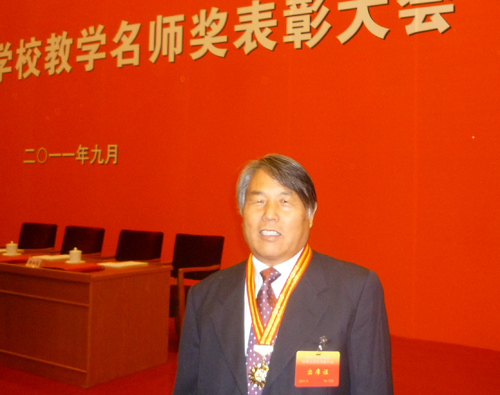 第六届全国高等学校教学名师奖表彰大会于9月8日在北京举行,教育部部长袁贵仁主持会议,中共中央政治局委员、国务委员刘延东出席并发表重要讲话,中央国家机关和军队有关部门负责同志以及教育系统代表共350人参加会议。本届获奖名师100位,来自全国92所高校。我校耿明斋教授作为全国高等学校教学名师代表参加会议,中共中央政治局委员、国务委员刘延东亲自为耿明斋教授颁奖。