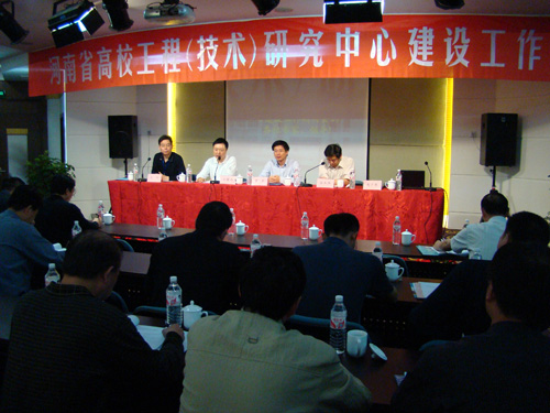 2008年5月13日,由省教育厅主办、河南大学承办的河南省高校工程技术研究中心建设工作研讨会在济源市亚飞酒店举行。来自全省三十余所高校和工程技术研究中心的代表齐聚一堂,共商我省高校工程技术研究中心发展大计。省教育厅科研外事处正处级调研员孔繁士、副处长张水潮,省发改委高新处副处长赵楠,我校副校长曹奎出席会议。会议由张水潮主持。