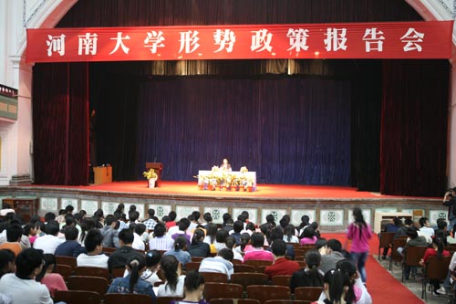 5月8日下午,我校在大礼堂举行了关于西藏问题的形势报告会,来自全校1500余名师生听取了报告,校领导孟庆琦主持会议。
