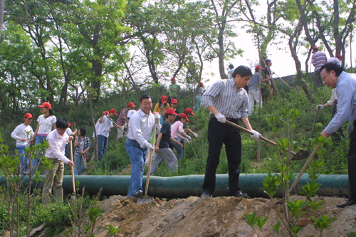 5月1日上午,张秉义、关爱和、梁晓夏、赵国祥、丁庭选、曹奎、王凌、关学增、孟庆琦、史全生等校领导,带领机关各部处的负责同志,来到东门城墙内侧,与部分大学生志愿者一起参加义务劳动,以特殊的方式迎接五一国际劳动节的到来。